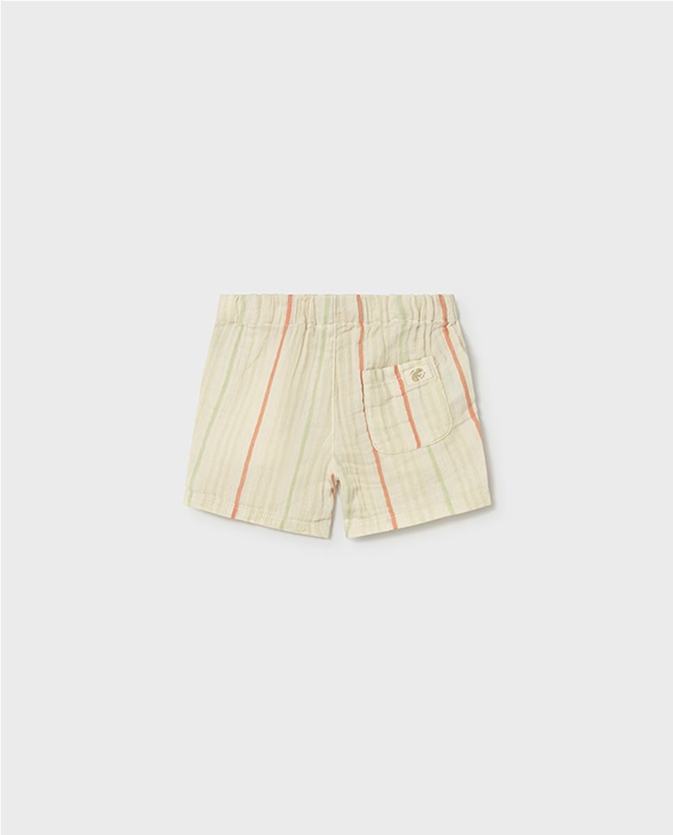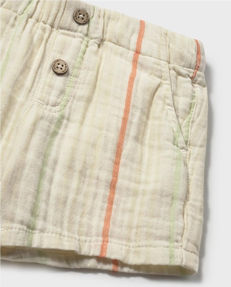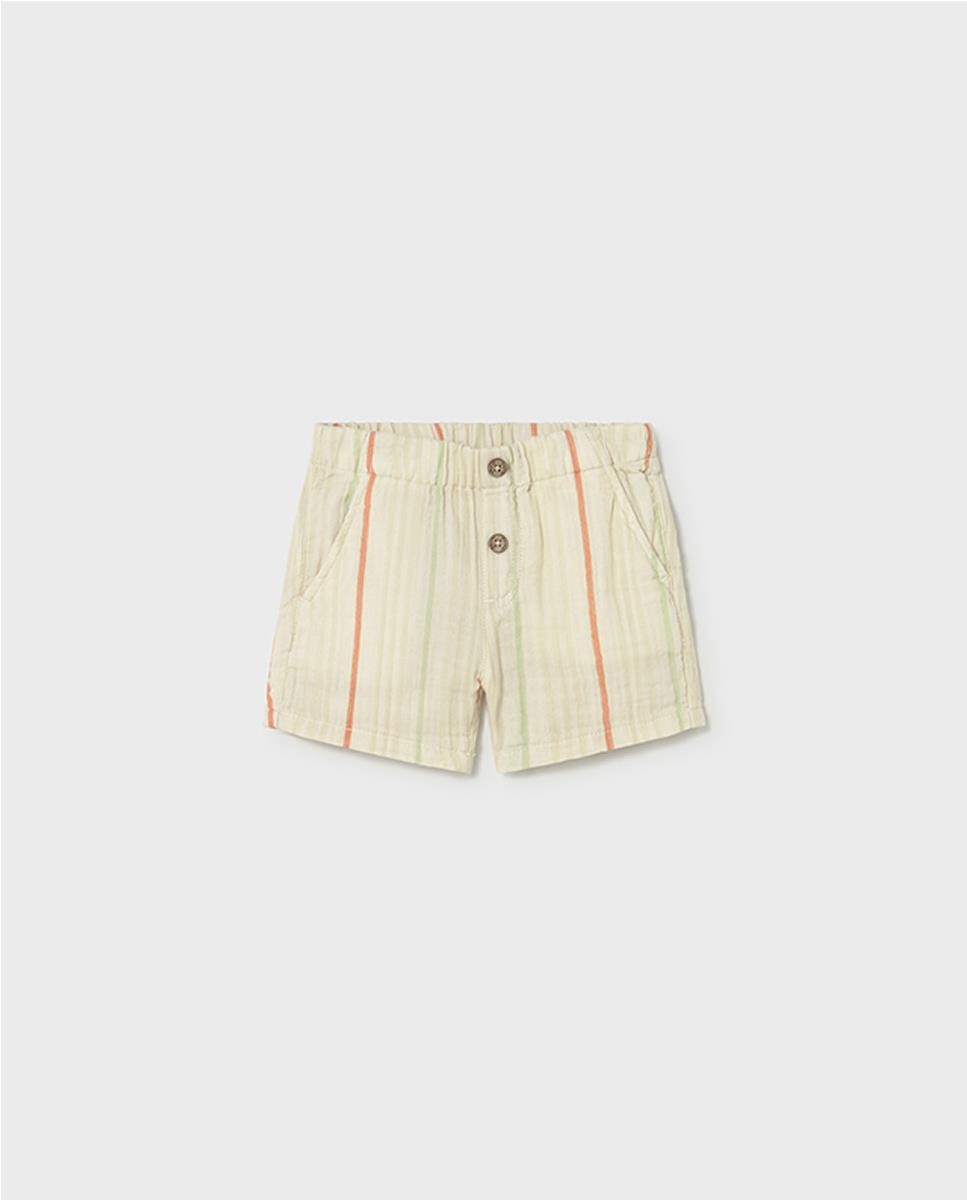 Bermuda bambula de algodón. Bolsillos laterales y botones de adorno. Cintura ajustable con ojales.