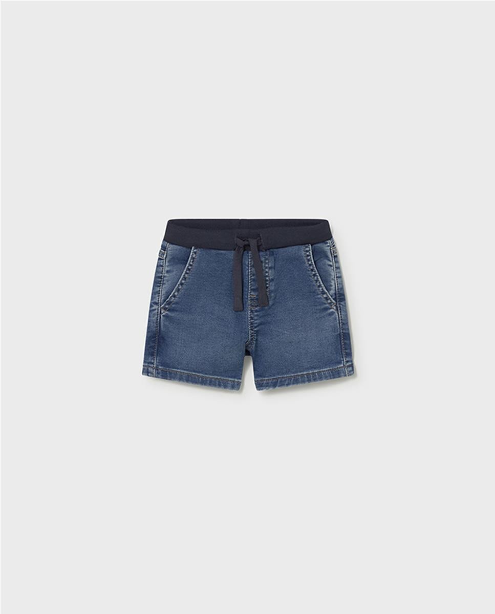 Bermuda tejana con cintura elástica ajustable con cordón. Bolsillos delanteros y traseros.