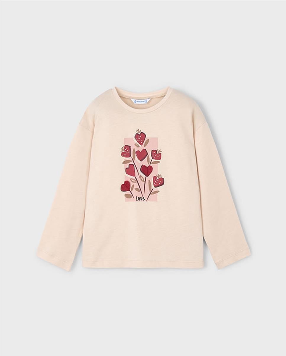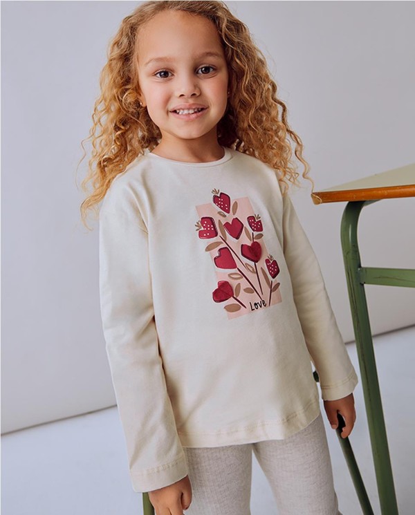 Camiseta de manga larga. Cuello redondo. Tejido 100% algodón. Elementos de adorno: serigrafía