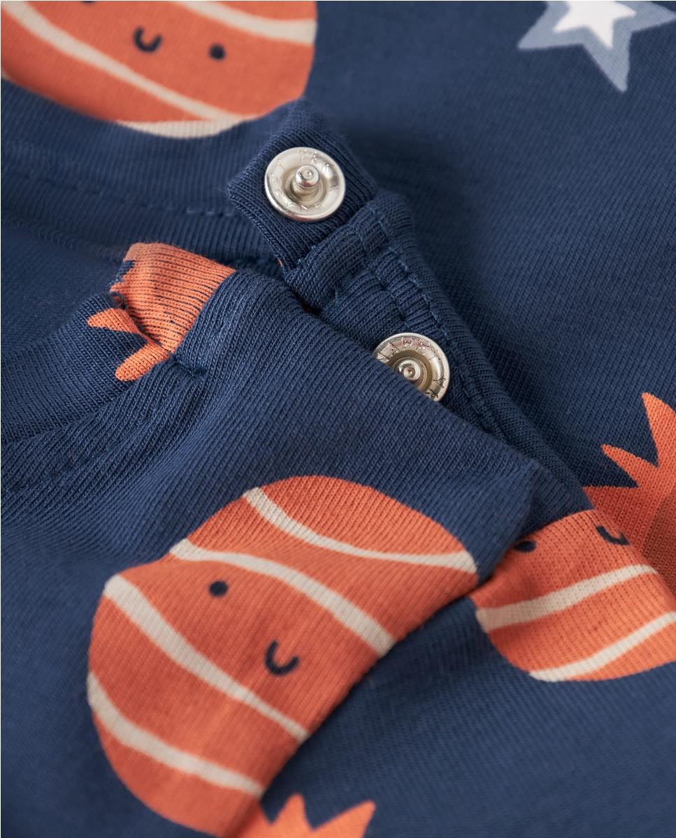 Camiseta de manga larga en algodón orgánico. Abertura en el hombro con corchetes. Estampación:Print.