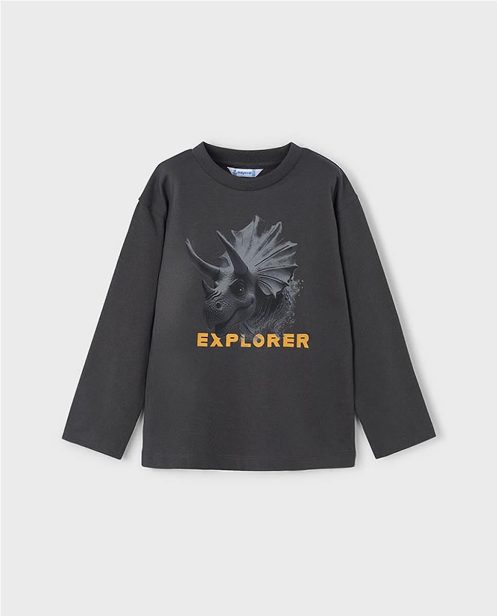 Camiseta de manga larga. Cuello redondo. Tejido 100% algodón. Elementos de adorno: serigrafía print.