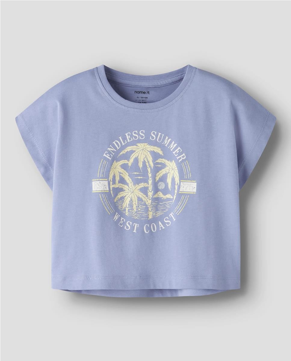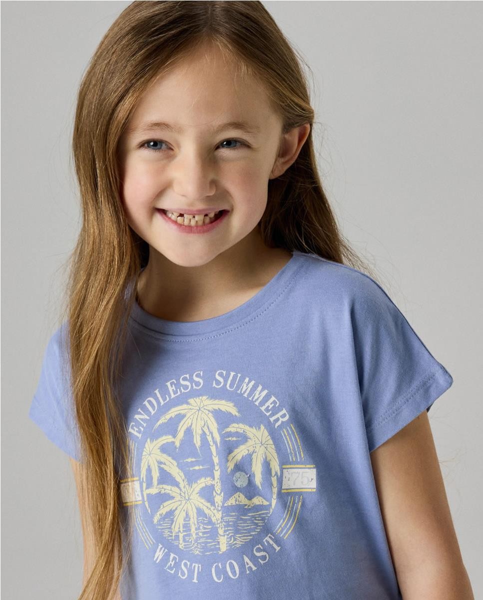 Camiseta corta con mangas japonesas. Estampación hawaiana.
