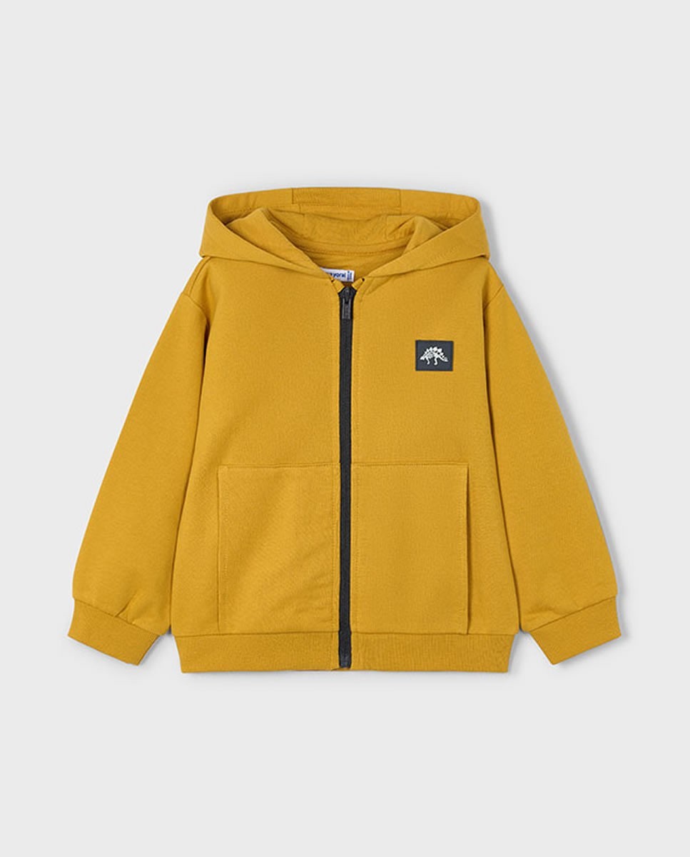 Canguro de manga larga. Cuello con capucha. Cierre central delantero con cremallera. Bolsillos funcionales en la parte delantera.