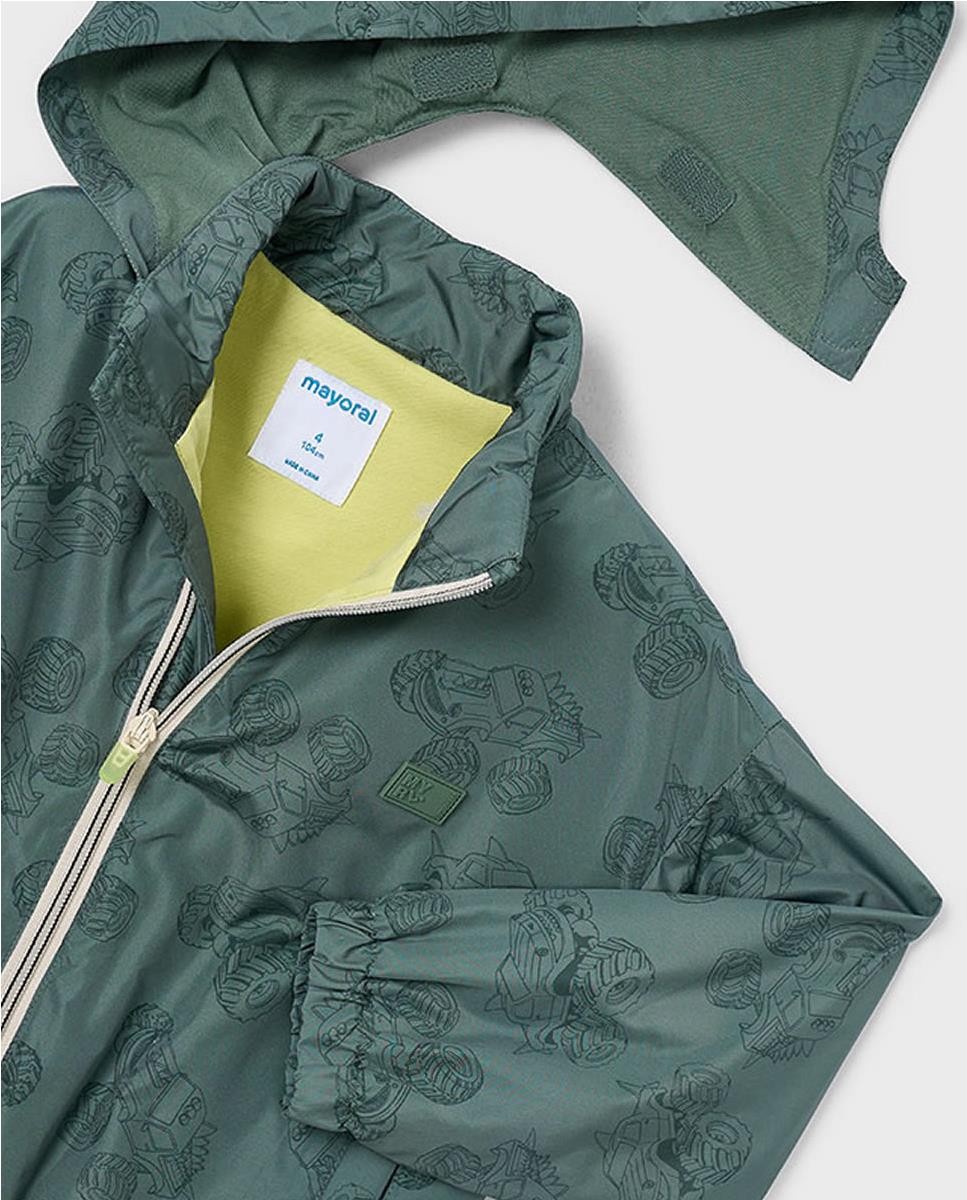 Cortavientos con capucha desmontable. Forro interior de algodón. Estampación: Trucks