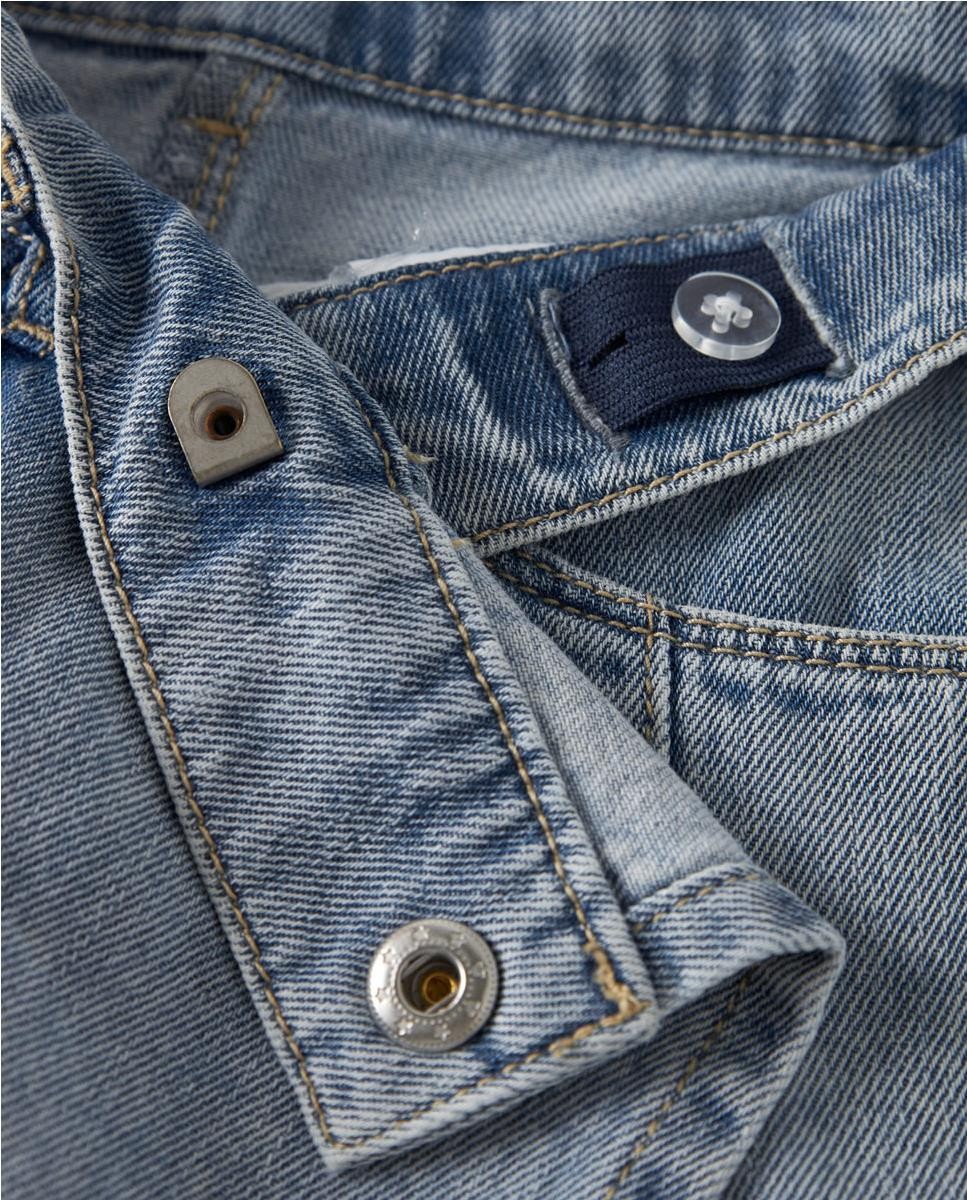 Falda short tejana con cierre de gancho y cremallera. Cintura ajustable.