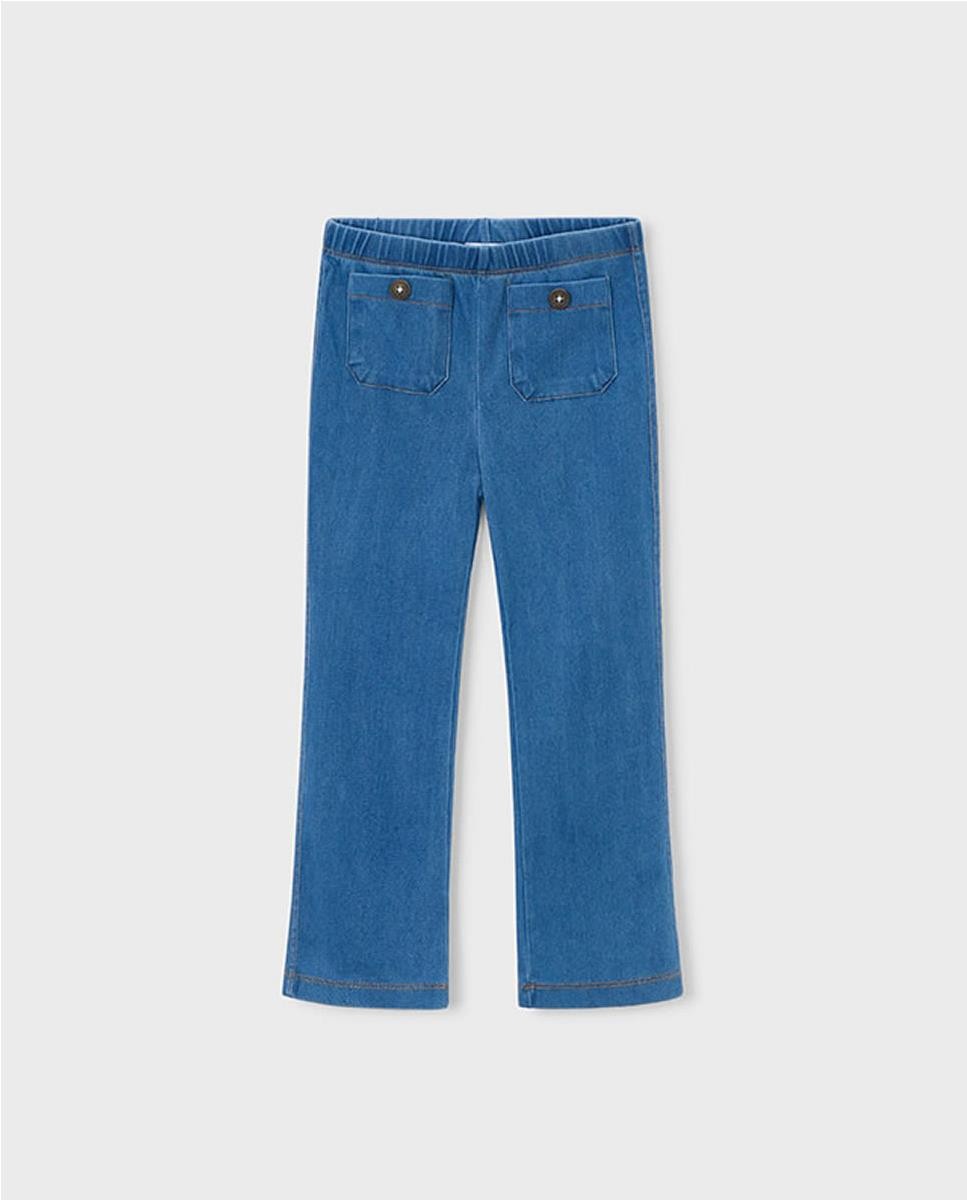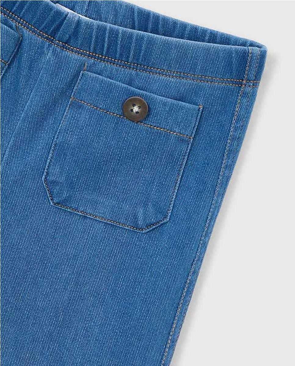 legging frare denim. Cintura de goma. Bolsillos delanteros con decoración de botón.
