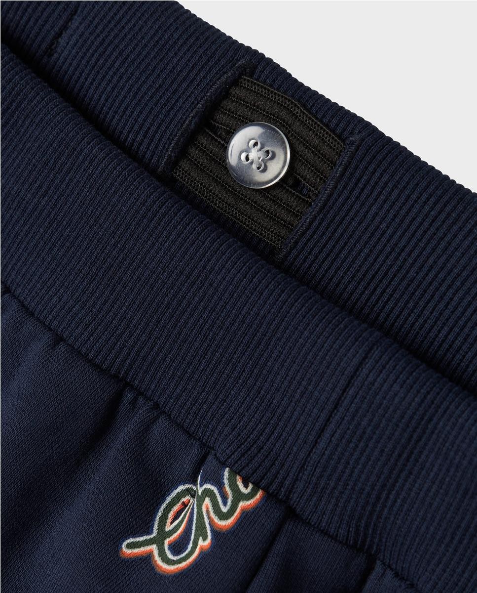 Pantalón de felpa con algodón orgánico. Cintura ajustable. Motivos print.