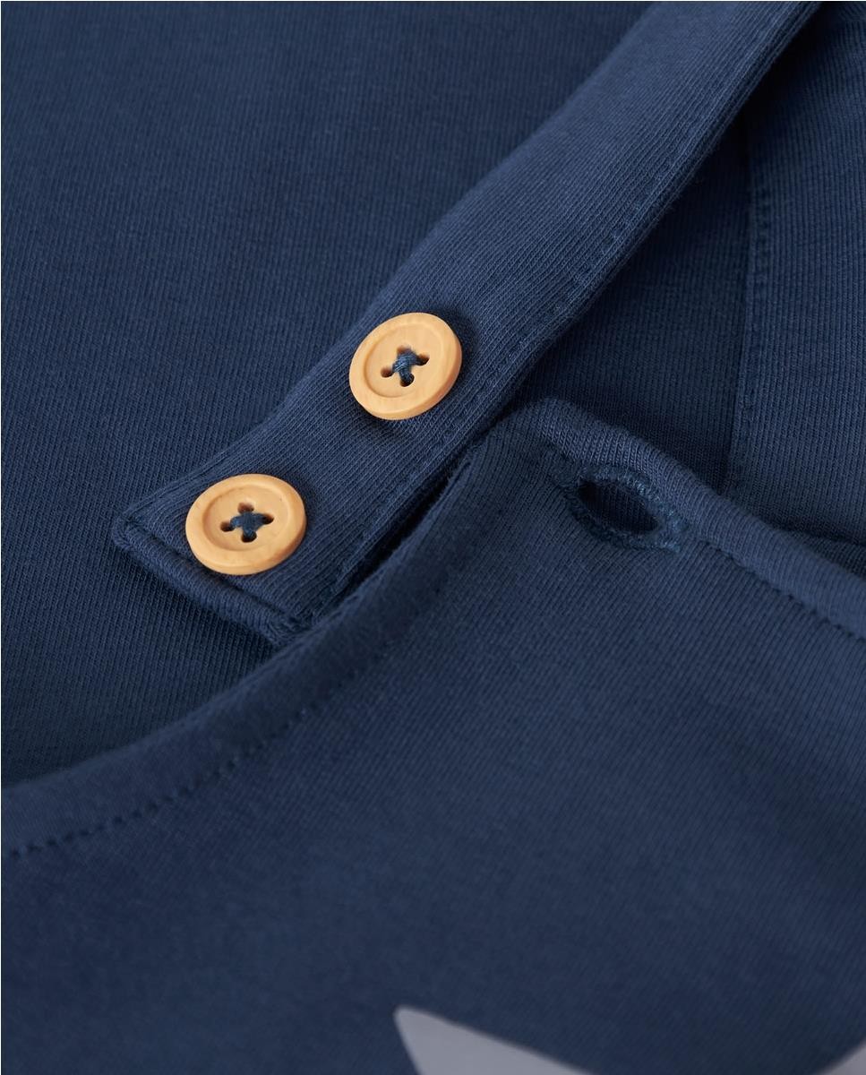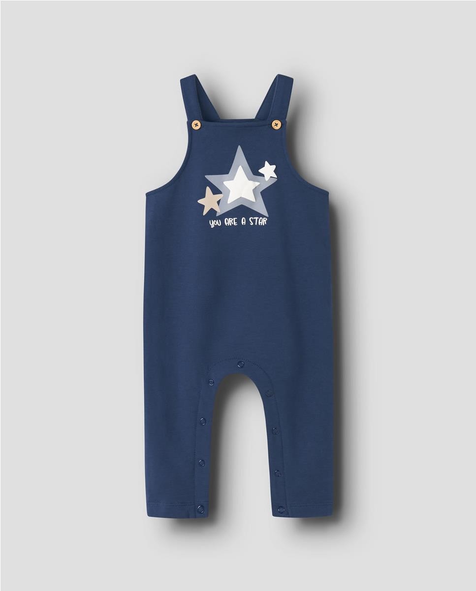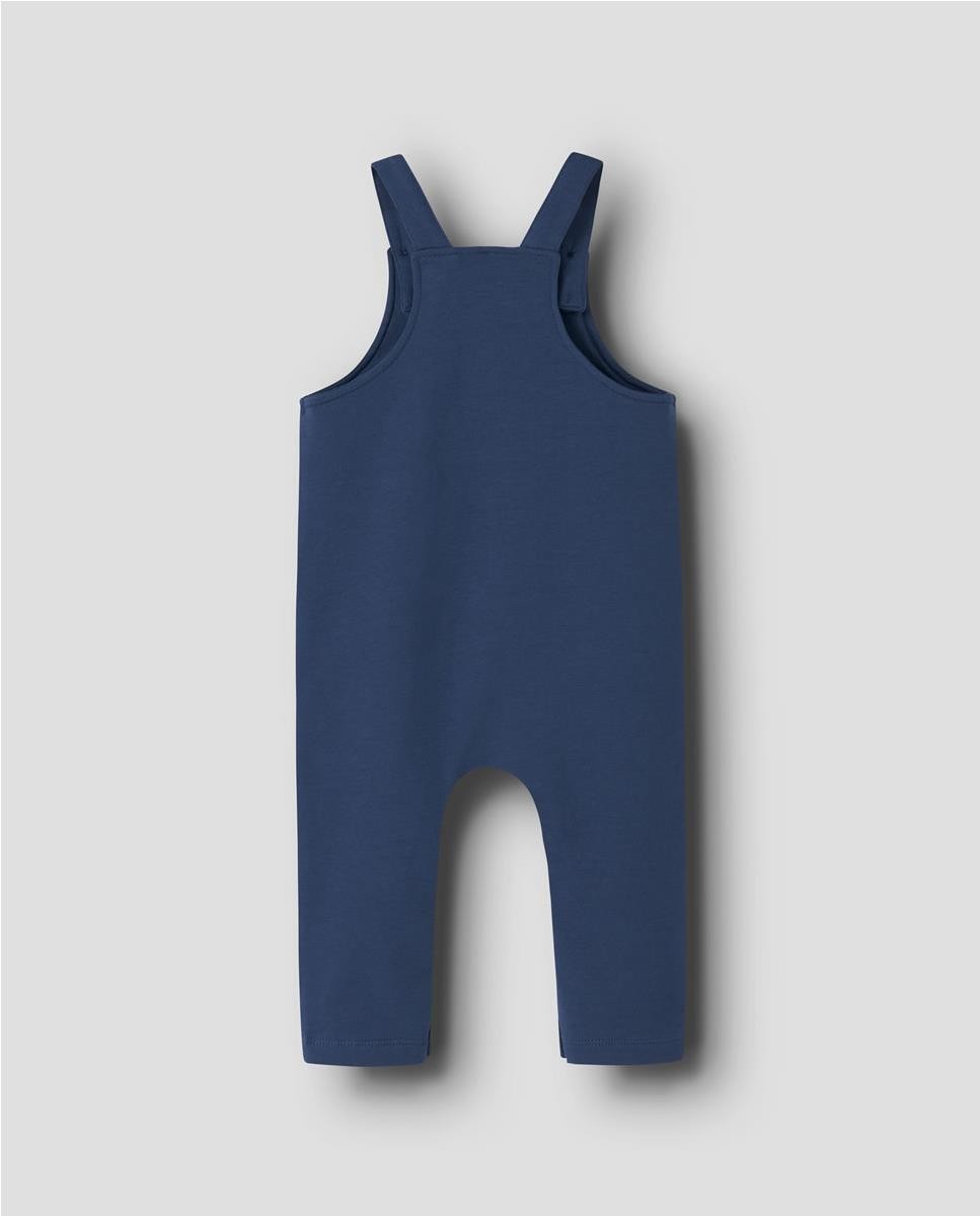 Peto de felpa en algodón orgánico. Abertura tirantes con botones regulables. Abertura inferior con corchetes. Estampación:Print.