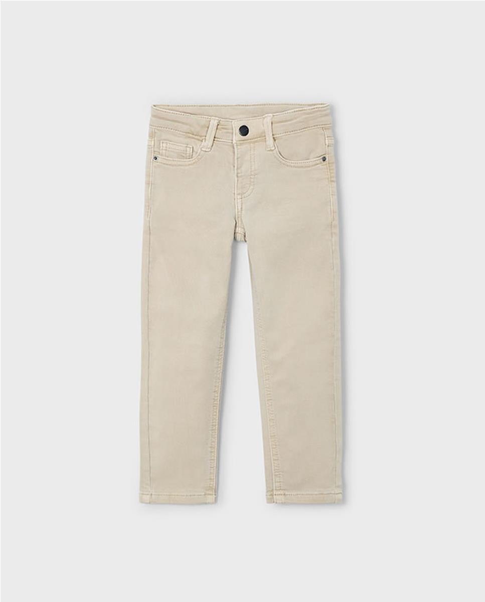 Pantalón largo regular fit. Cierre con cremallera y botón. Goma elástica regulable con botones en el interior de la cinturilla para mayor ajuste.