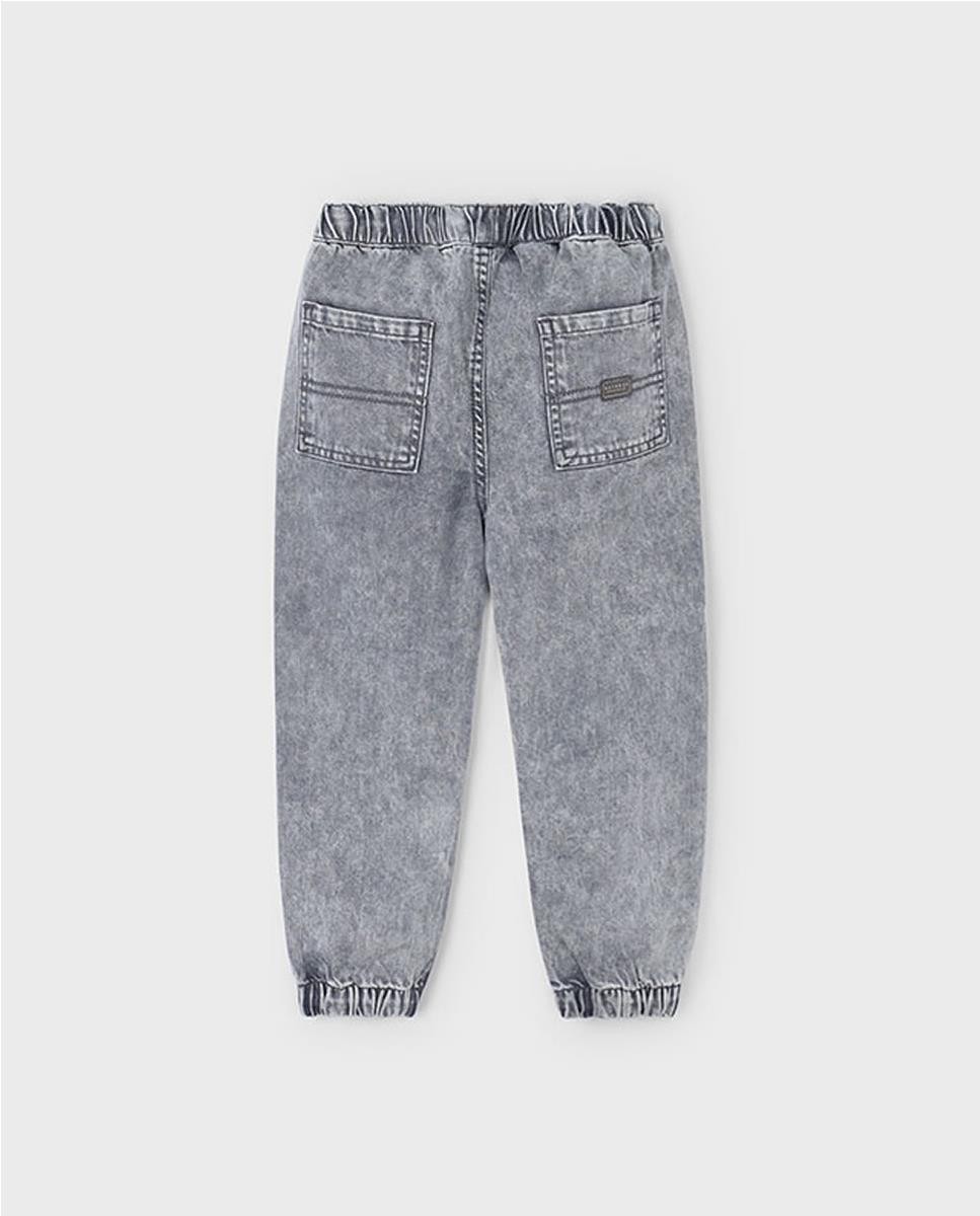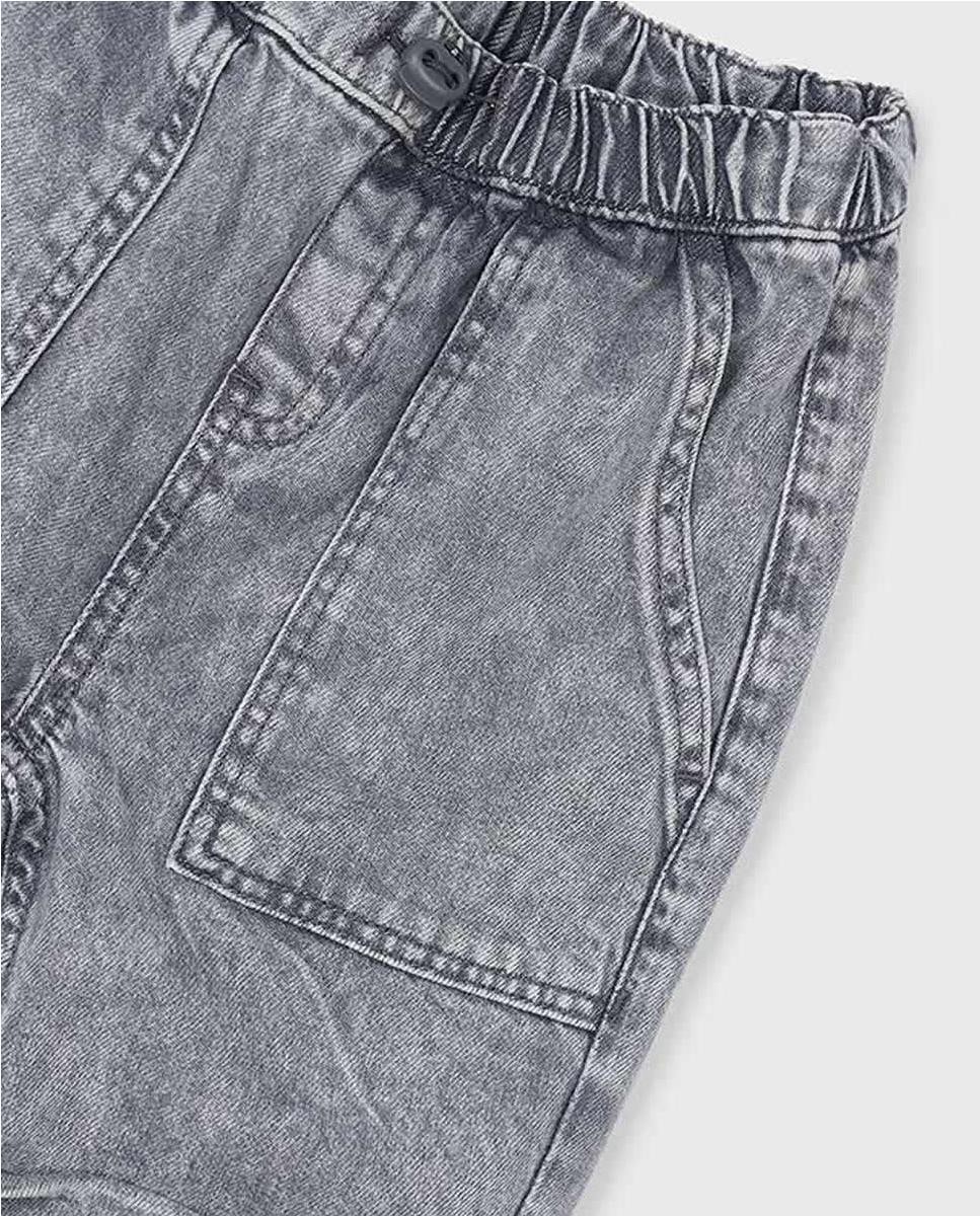 Pantalón de corte amplio con bajo ajustable. Cinturilla elástica. Moderno tejido denim con efecto lavado y acabado desgastado. Bajo elástico para un mejor ajuste. Diseño con múltiples bolsillos.