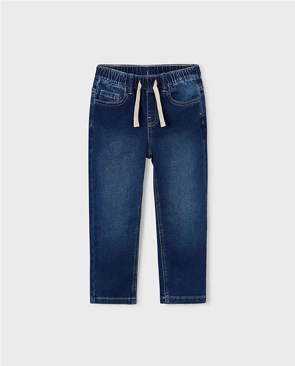 Pantalón largo de tipo jogger, holgado en la parte superior y más estrecho a medida que baja hacia el tobillo. Cinturilla elástica con cordón.