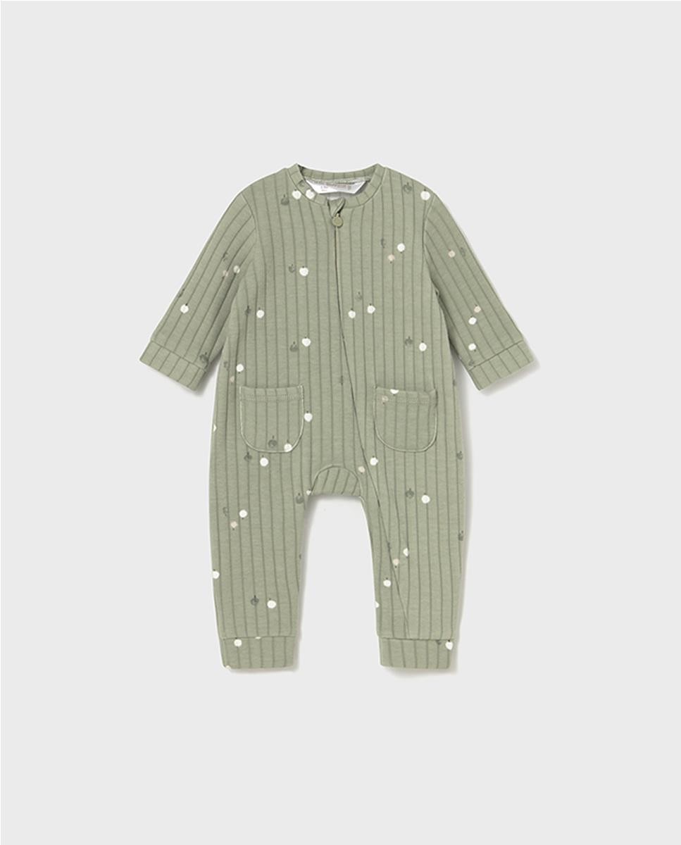 Pelele de manga larga. Cuello redondo. Cierre central delantero con cremallera oculta. Diseño estampado. Se trata de un artículo de diseño unisex.