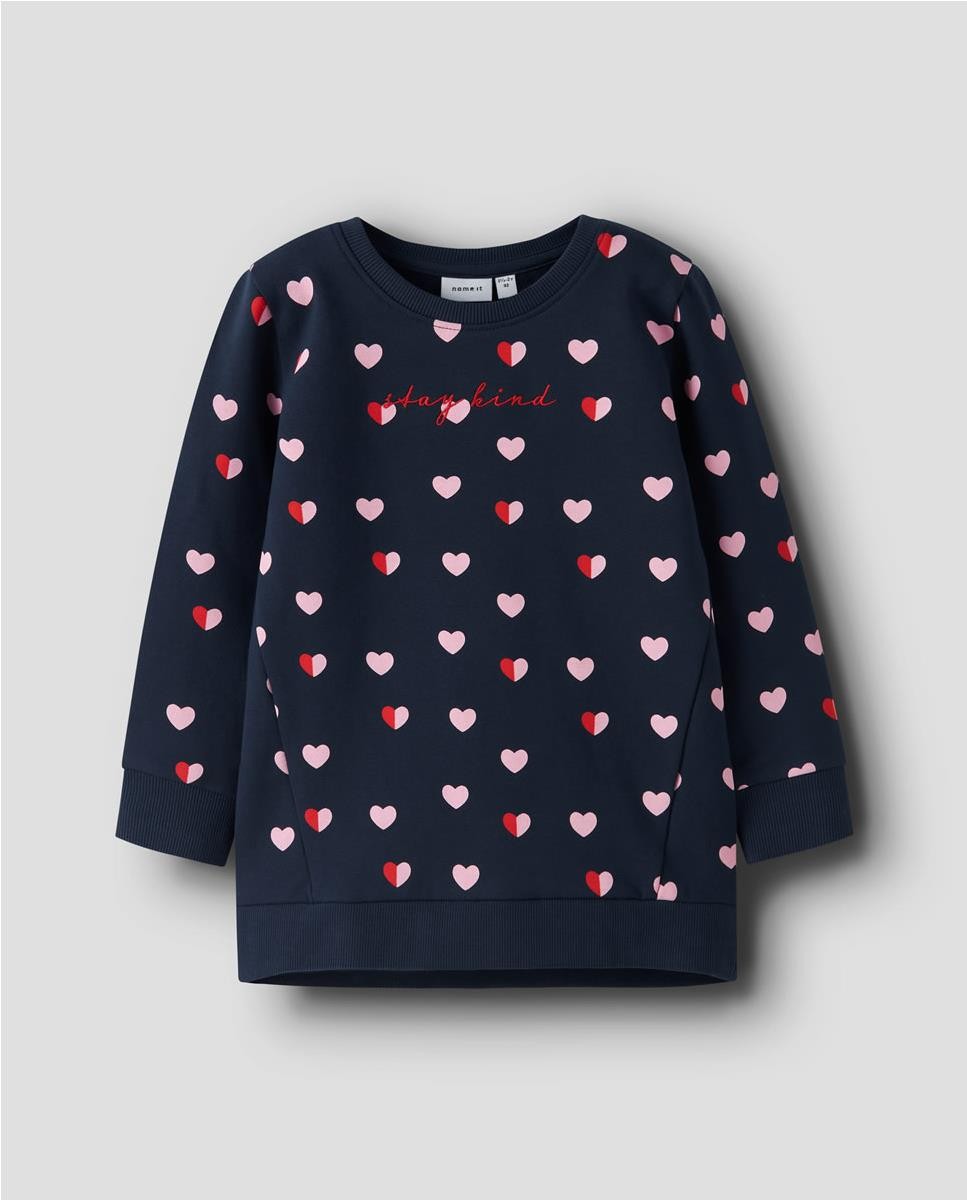Sudadera larga de felpa con algodón orgánico. Estampado de corazones y detalle adicional bordado.