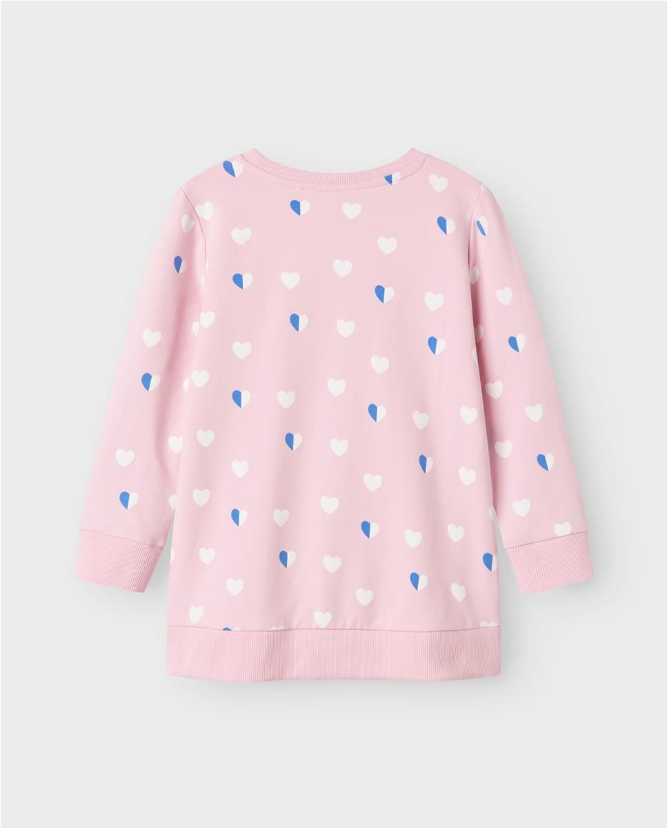 Sudadera larga de felpa con algodón orgánico. Estampado de corazones y detalle adicional bordado.