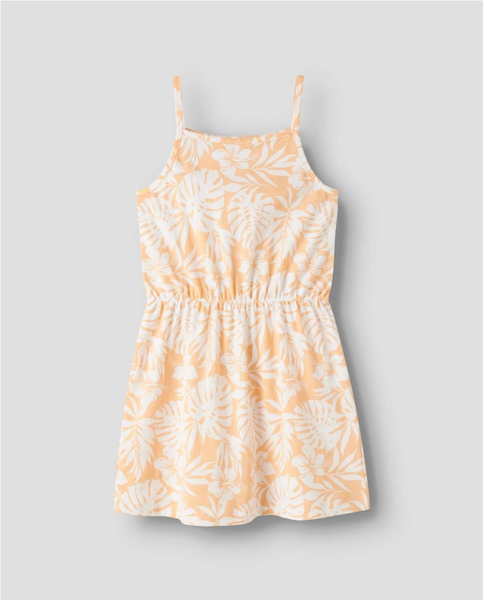 Vestido de punto con tirantes en algodón peinado. Estampación Tropical.