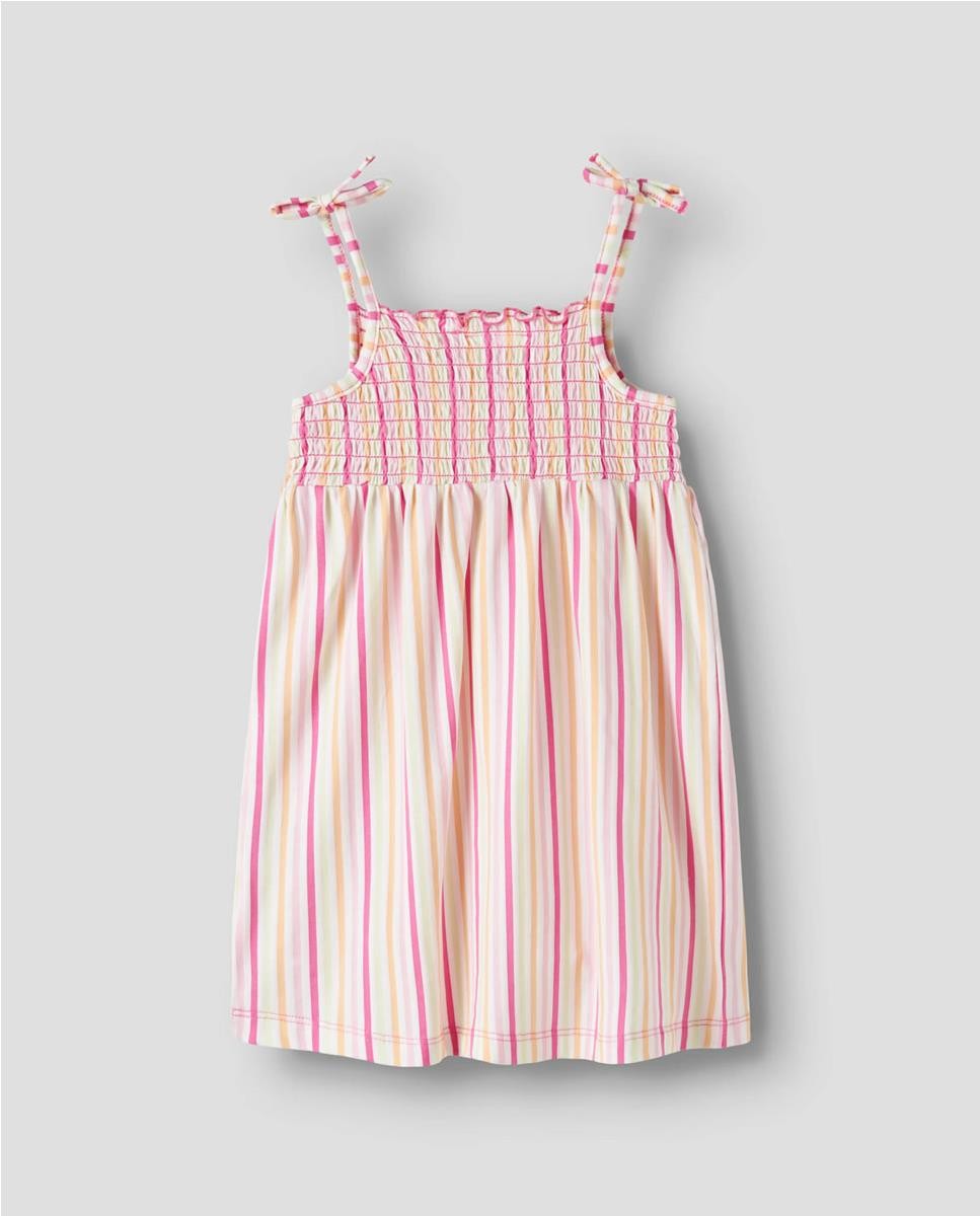 Vestido de tirantes en tejido con un mínimo de 50% de algodón orgánico. Fruncido en el pecho. Estampación en toda la prenda.